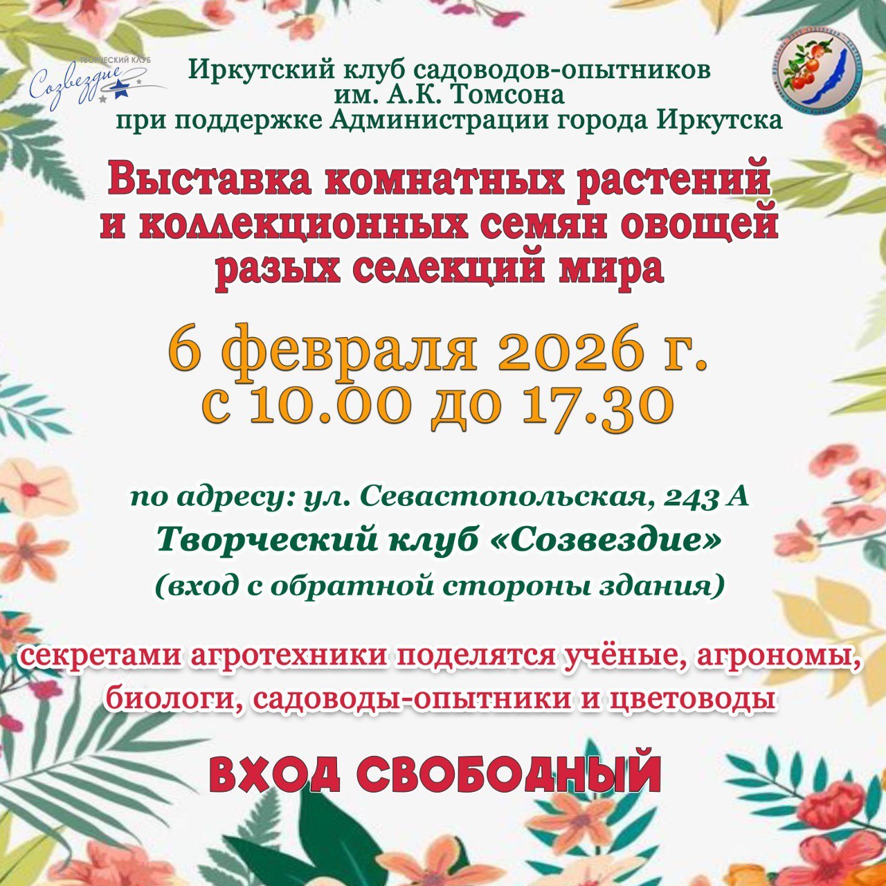 2025-11-04 18:53 Иркутский клуб садоводов - опытников им. А. К. Томсона приглашает на выставку 6 - 8 ноября 2025 года в культурно - досуговом центре "Марат".